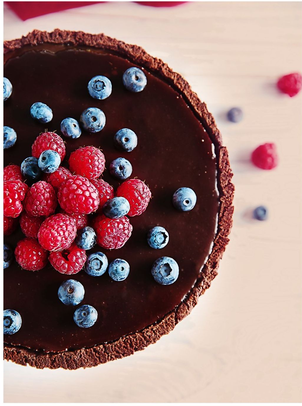 3. Tarta migdałowa z kremem czekoladowym i malinami